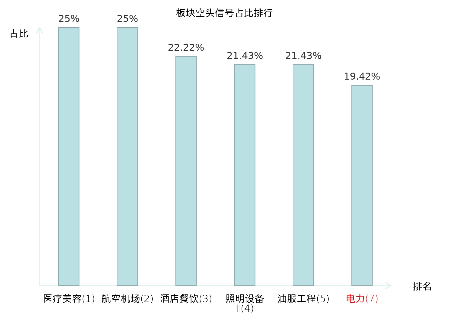 全市场所有行业板块中主力空头信号占比排名中,医疗美容板块位居第一。专业工程板块名次提升最快,较昨日上升108位。