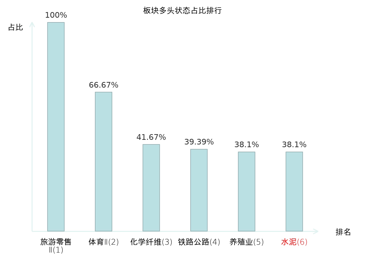 全市场所有行业板块中主力多头状态占比排名中,旅游零售Ⅱ板块位居第一。旅游零售Ⅱ板块名次提升最快,较昨日上升130位。