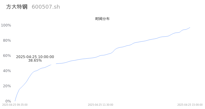 600507方大特钢2025年04月25日成交69.78万手,成交金额3.14亿,相较昨日缩量26.24万手,换手率3.02%,成交清淡。