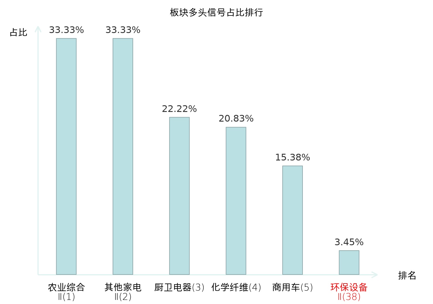全市场所有行业板块中主力多头信号占比排名中,农业综合Ⅱ板块位居第一。其他家电Ⅱ板块名次提升最快,较昨日上升128位。