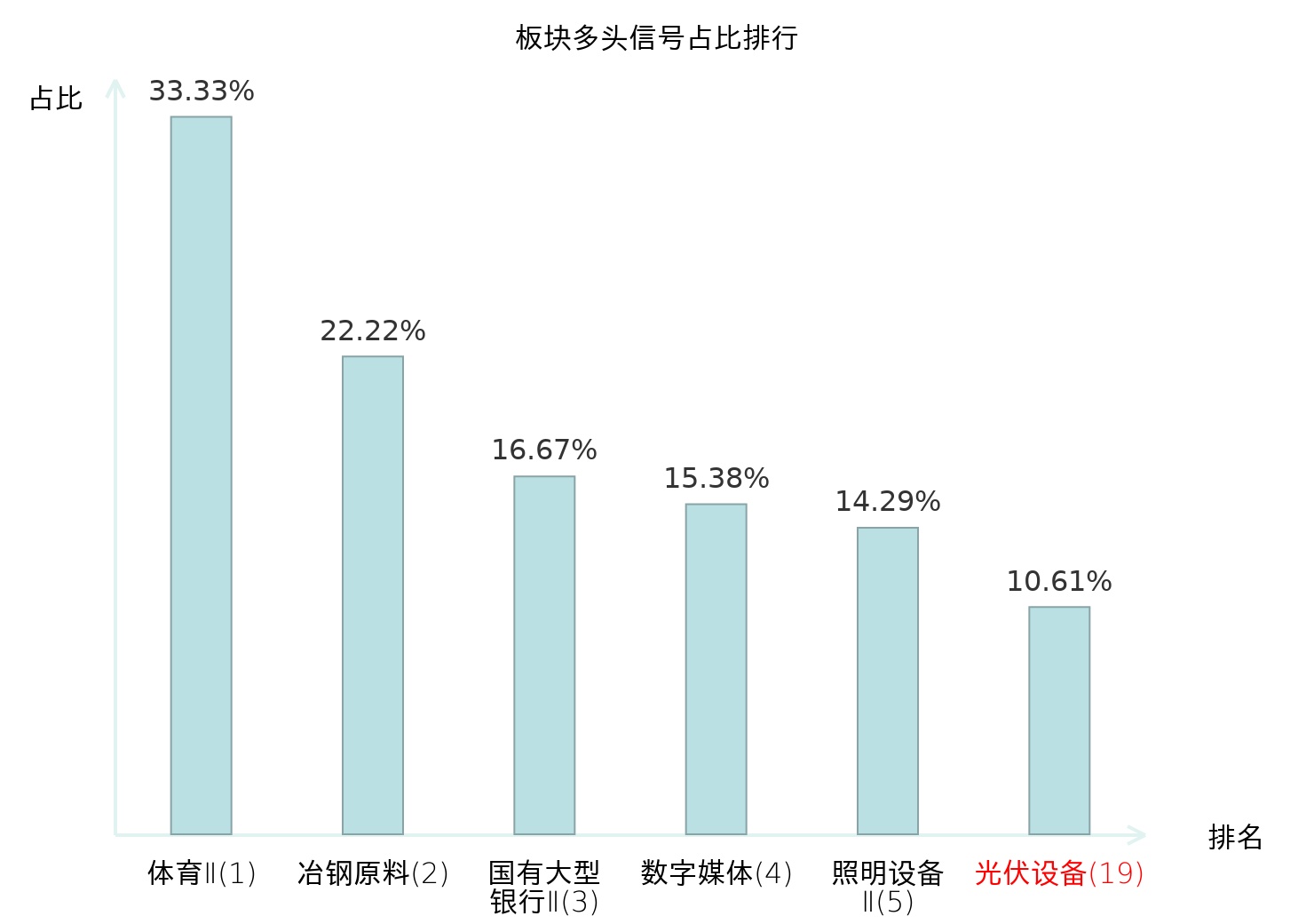 全市场所有行业板块中主力多头信号占比排名中,体育Ⅱ板块位居第一。体育Ⅱ板块名次提升最快,较昨日上升129位。