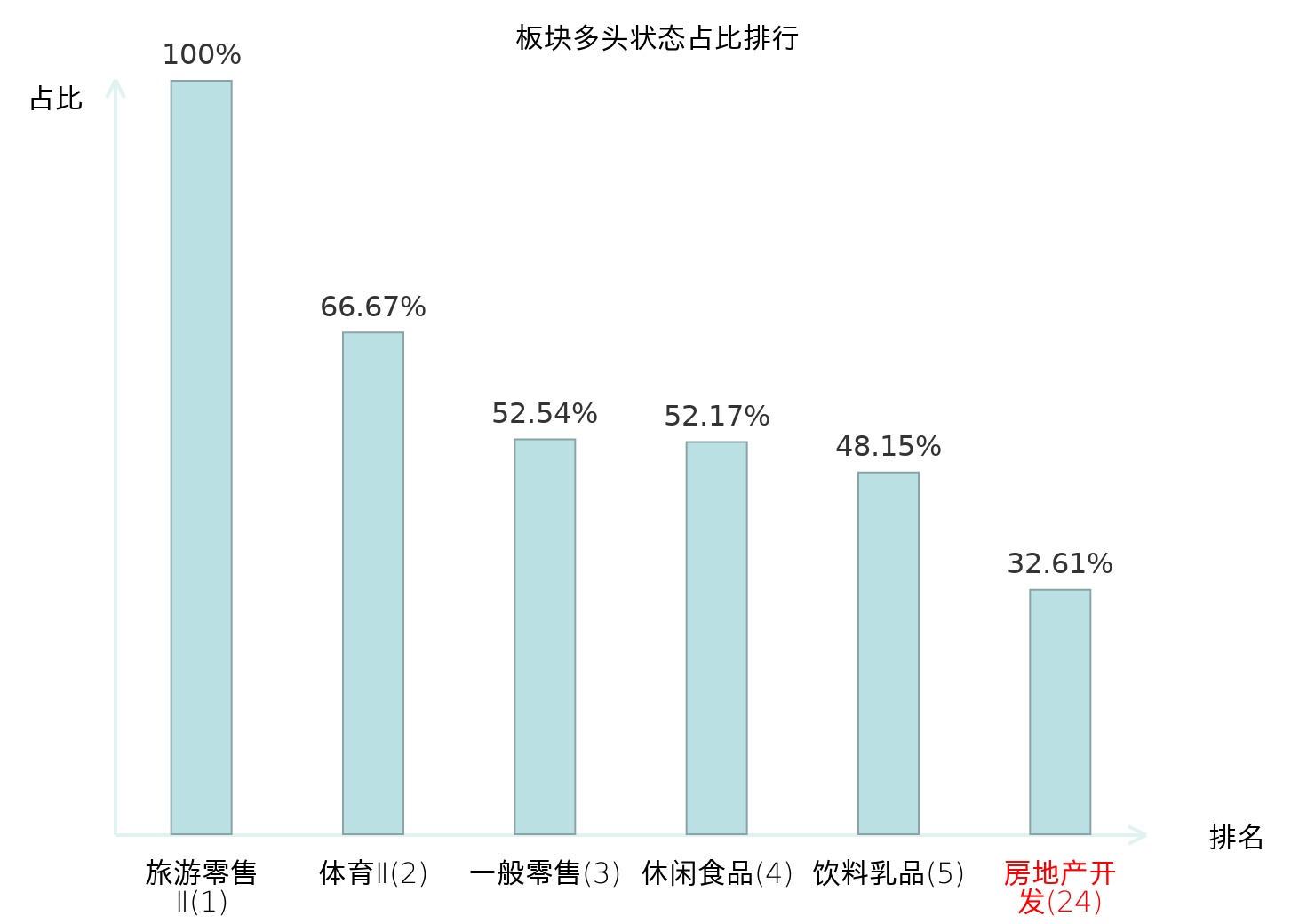 全市场所有行业板块中主力多头状态占比排名中,旅游零售Ⅱ板块位居第一。农业综合Ⅱ板块名次提升最快,较昨日上升109位。