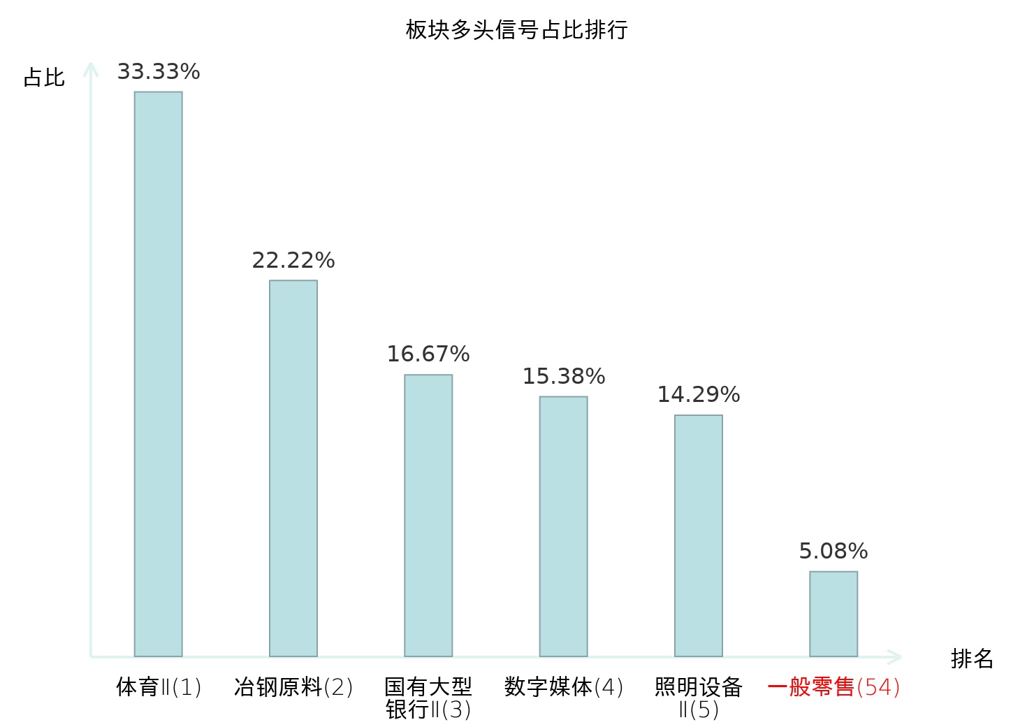 全市场所有行业板块中主力多头信号占比排名中,体育Ⅱ板块位居第一。体育Ⅱ板块名次提升最快,较昨日上升129位。