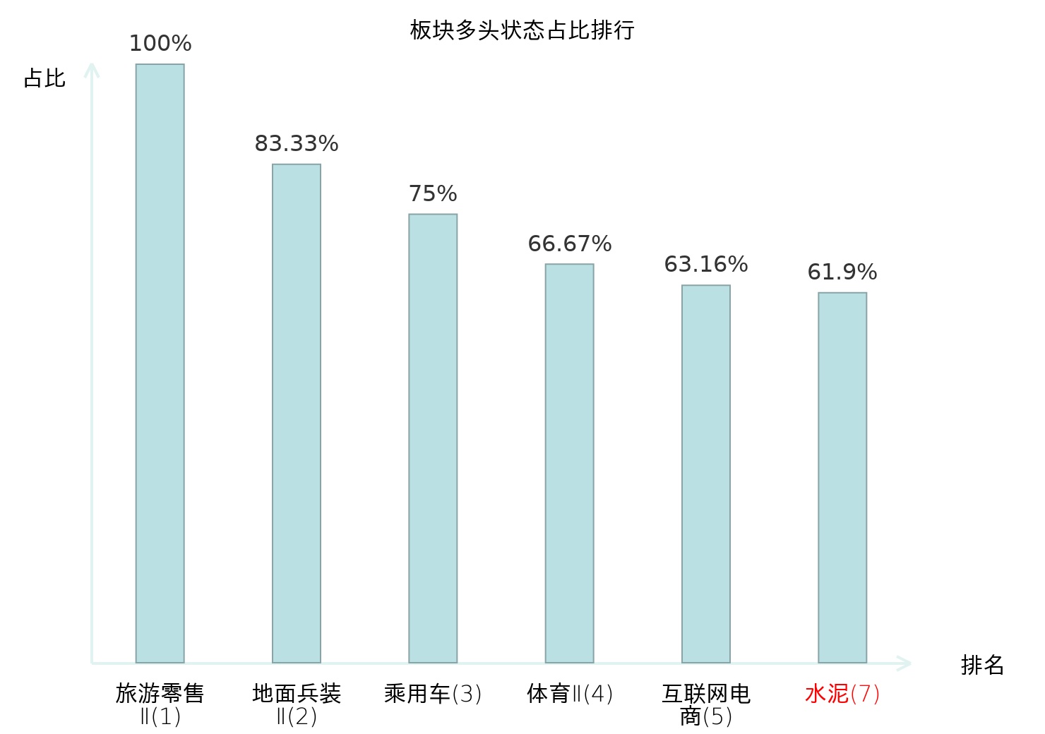 全市场所有行业板块中主力多头状态占比排名中,旅游零售Ⅱ板块位居第一。消费电子板块名次提升最快,较昨日上升52位。