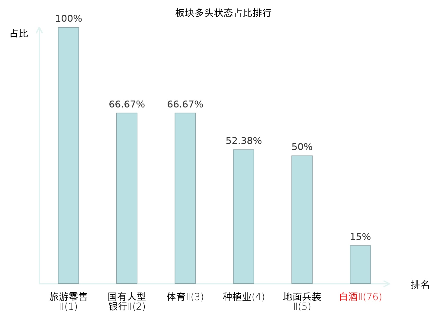 全市场所有行业板块中主力多头状态占比排名中,旅游零售Ⅱ板块位居第一。股份制银行Ⅱ板块名次提升最快,较昨日上升54位。