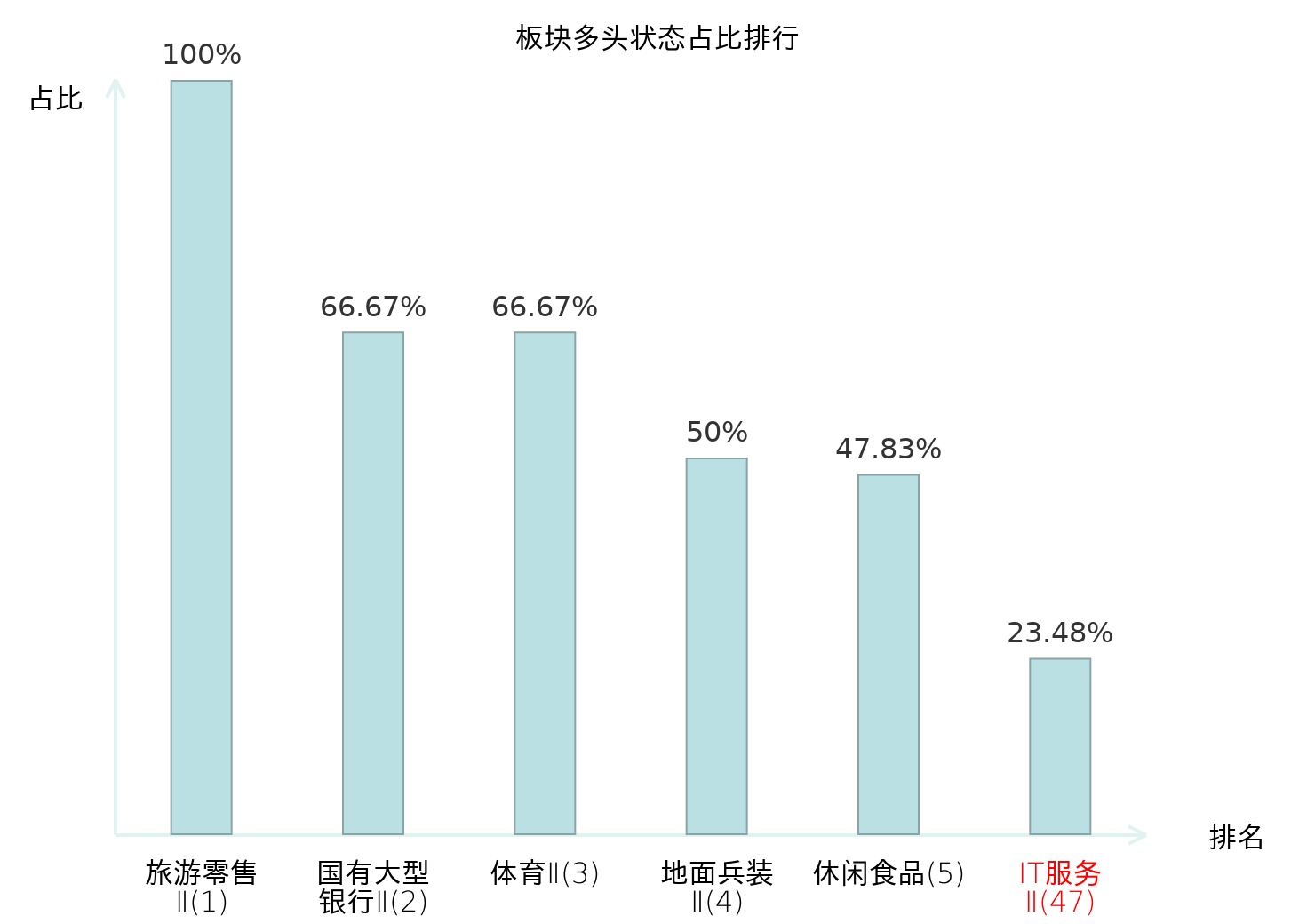 全市场所有行业板块中主力多头状态占比排名中,旅游零售Ⅱ板块位居第一。航空机场板块名次提升最快,较昨日上升80位。