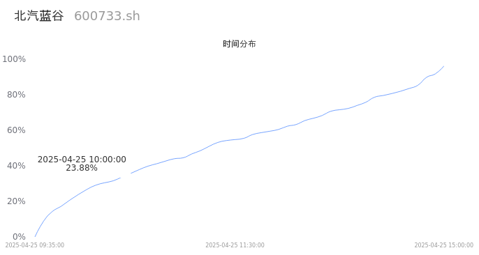 600733北汽蓝谷2025年04月25日成交66.23万手,成交金额5.01亿,相较昨日缩量23.50万手,换手率1.36%,成交清淡。