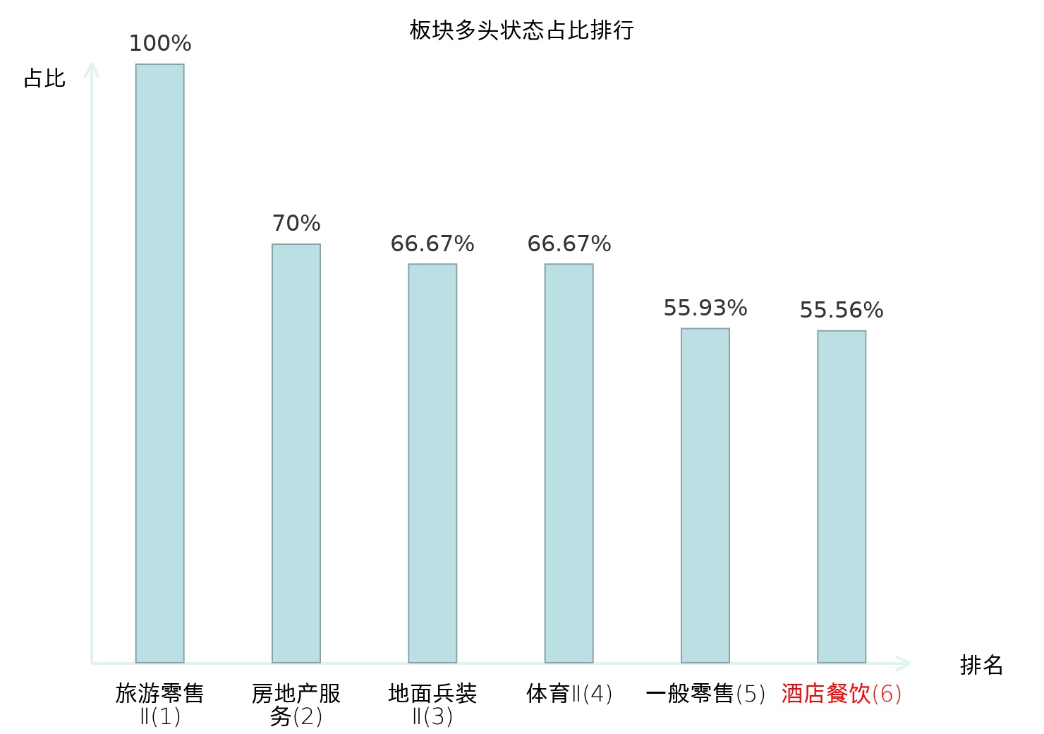 全市场所有行业板块中主力多头状态占比排名中,旅游零售Ⅱ板块位居第一。林业Ⅱ板块名次提升最快,较昨日上升68位。