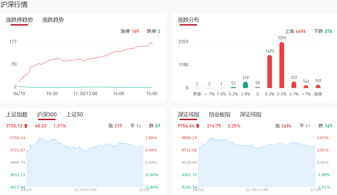 台湾加权指数4月10日开盘上涨1580.4点,涨幅9.09%,报18972.16点。台积电、鸿海涨停。