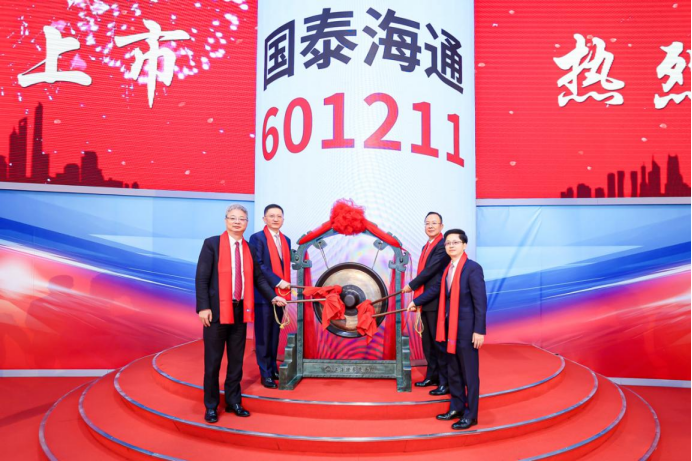 也就在这一天,国泰海通证券重组更名上市仪式在上交所举行,上交所与国泰海通签订《证券上市协议》。上海市国资委党委书记、主任贺青,国泰海通党委书记、董事长朱健,上海国际集团党委书记、董事长、国泰海通副董事长周杰,上海证监局副局长王登勇,上交所副总经理王泊,国泰海通党委副书记、总裁李俊杰出席仪式。贺青、朱健、周杰、李俊杰共同为国泰海通在上交所主板股票交易鸣锣开市。