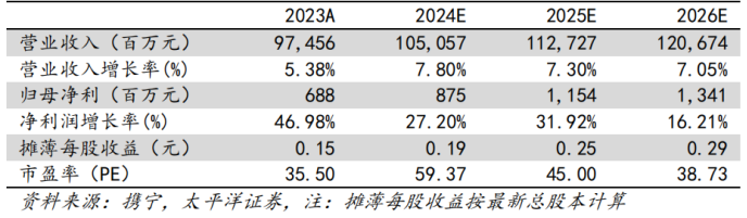 公司端,公司具有电视研产供销服等方面的深厚积淀和完备的价值链体系,同时渠道积极拓展且整体供应链充分协同,收入业绩有望恢复增长。同时受益于旗下子公司参与华为昇腾智算相关业务,公司估值水平或将继续提升。预计2024-2026年公司归母净利润为8.75/11.54/13.41亿元,对应EPS为0.19/0.25/0.29元,当前股价对应PE分别为59.37/45.00/38.73倍。维持“买入”评级。
