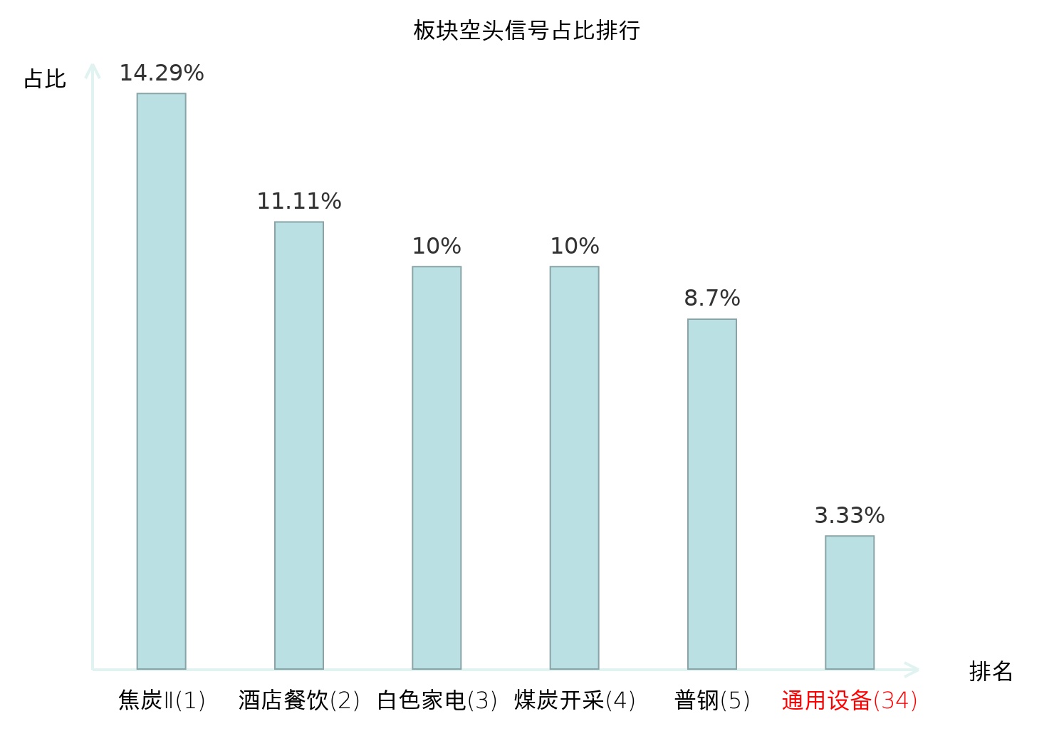 全市场所有行业板块中主力空头信号占比排名中,焦炭Ⅱ板块位居第一。生物制品板块名次提升最快,较昨日上升113位。