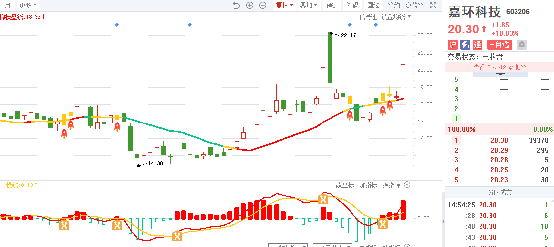 1)嘉环科技-四维操盘-近期出现火箭信号且底部量柱由绿转红