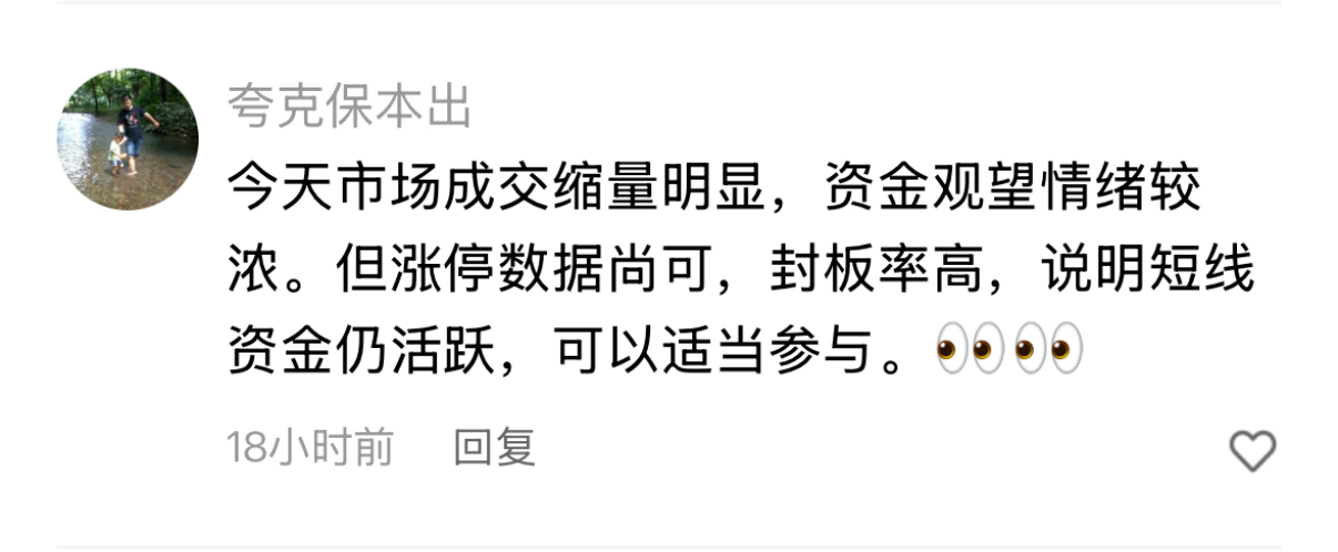 在这里要点赞咱们的课代表在评论区里给大家做的总结,非常到位。而且精准把握了市场开始回暖的信号。明天是非常关键的一天,情绪加强,市场的二波就来了,今天大家好好做功课。