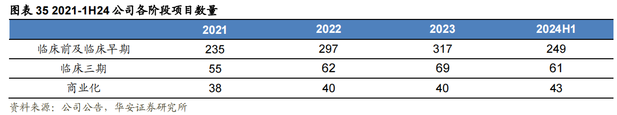 1H24小分子商业化阶段项目实现收入13.96亿元,剔除去年同期大订单影响,收入同比增长8.8%。在手商业化项目43个,其中新增商业化项目9个。随着公司降本增效以及后期项目的推进增多,小分子业务已基本消化因大订单增加的各项资源。