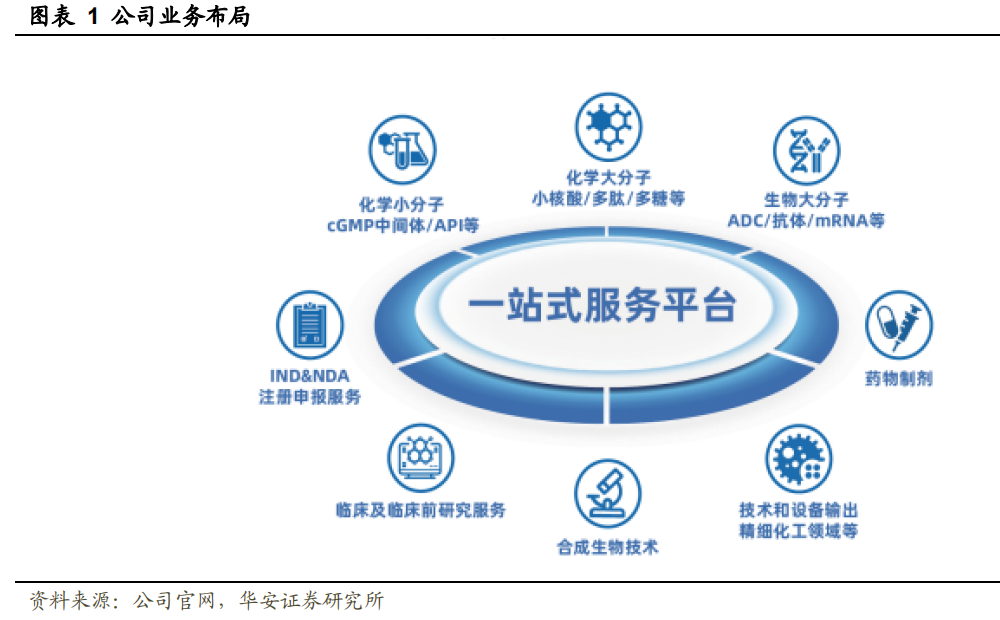 凯莱英成立于1998年,2016年登陆深交所创业板,是全球领先的服务于新药研发和生产的CDMO一站式综合服务商。历经20余年的沉淀与积累,公司现已成为全球排名前列的创新药原料药CDMO,中国最大商业化阶段化学药物CDMO公司之一。为全球超1100家客户提供了药品全生命周期的一站式服务,与众多全球制药巨头形成了较强的合作粘性,逐步构建起创新药一体化服务生态圈。