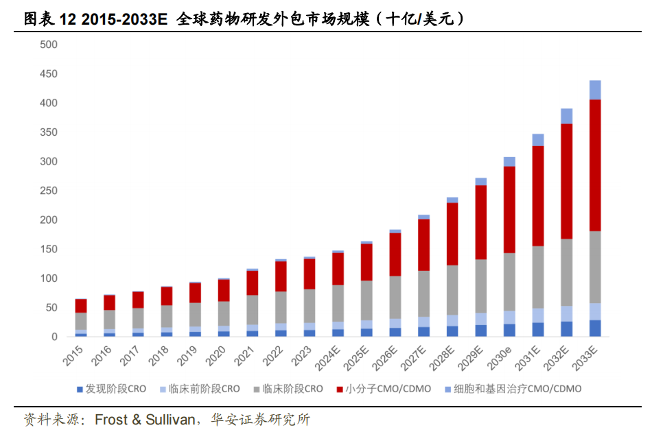全球外包服务需求增速有望快于研发投入的增长。根据Frost&Sullivan,预计2023-2028年全球CXO市场CAGR有望实现12%。