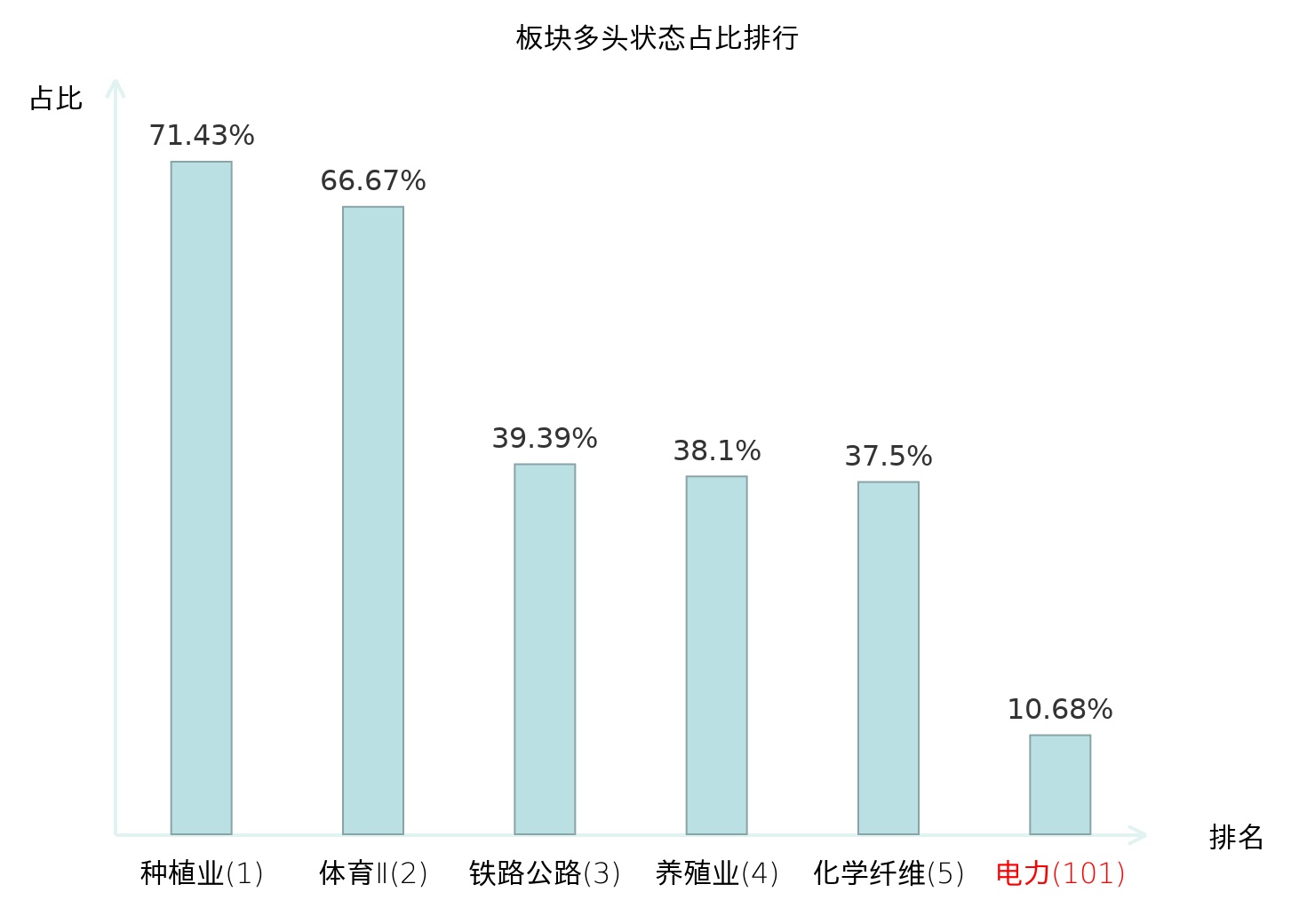 从主力宝信号数据分析,广安爱众所属的电力板块中有11只股票处于主力多头状态,主力多头状态占比在全行业中排名第101位,较昨日上升1位。较高的排名表明主力对于该板块整体看多意愿较强,此次排名的小幅上升可能反映了主力对该板块态度的进一步乐观。全市场所有行业板块中,种植业板块的主力多头状态占比最高,位居第一;养殖业板块名次提升最快,较昨日上升99位。这些变动揭示了不同行业间主力资金动向的趋势,为投资者提供了关于市场情绪和潜在投资机会的重要线索。