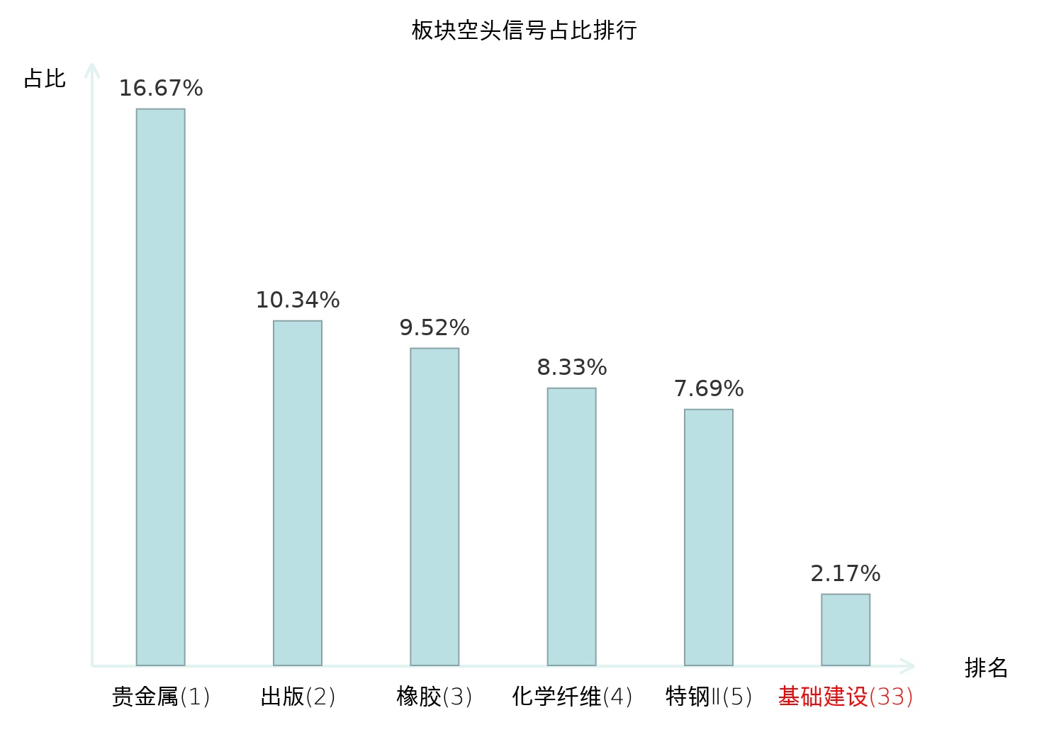 全市场所有行业板块中主力空头信号占比排名中,贵金属板块位居第一。环境治理板块名次提升最快,较昨日上升111位。