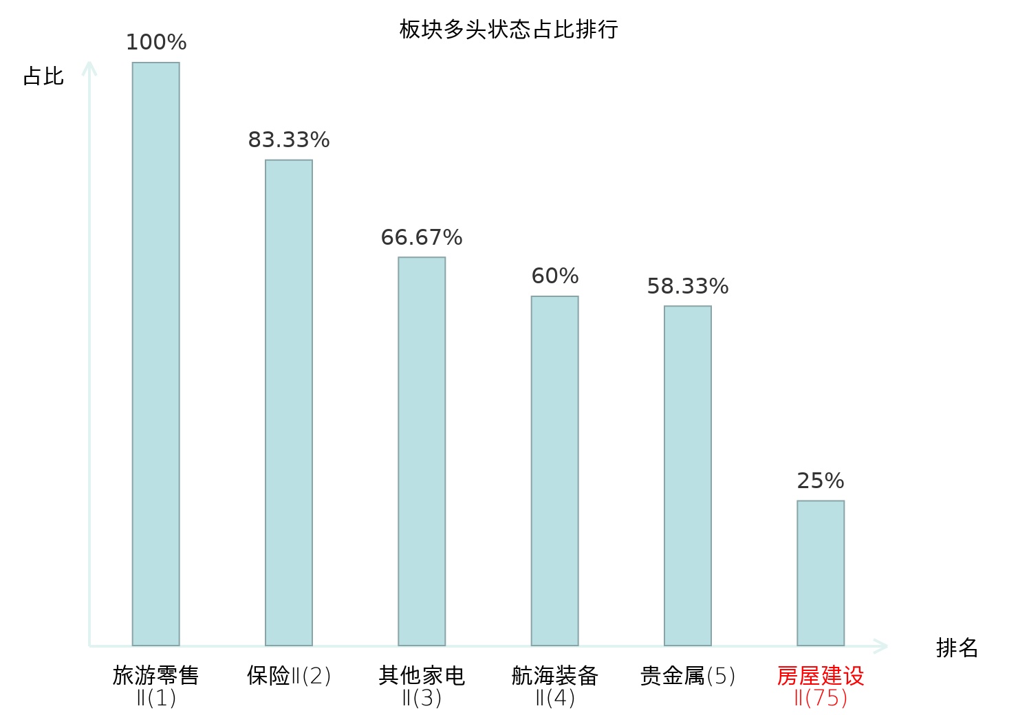 全市场所有行业板块中主力多头状态占比排名中,旅游零售Ⅱ板块位居第一。综合Ⅱ板块名次提升最快,较昨日上升69位。