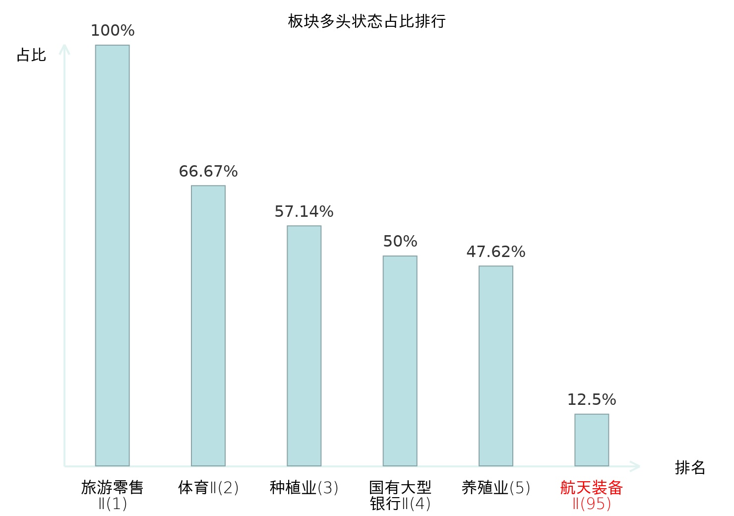 全市场所有行业板块中主力多头状态占比排名中,旅游零售Ⅱ板块位居第一。互联网电商板块名次提升最快,较昨日上升89位。
