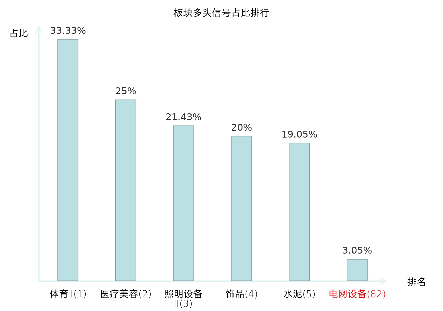 全市场所有行业板块中主力多头信号占比排名中,体育Ⅱ板块位居第一。医疗美容板块名次提升最快,较昨日上升126位。