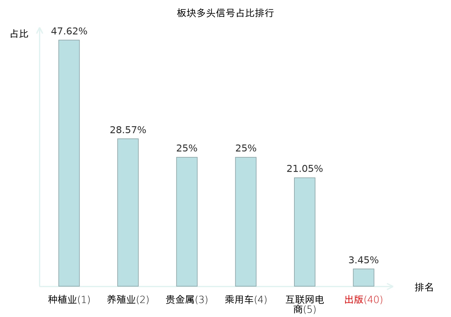 全市场所有行业板块中主力多头信号占比排名中,种植业板块位居第一。乘用车板块名次提升最快,较昨日上升115位。
