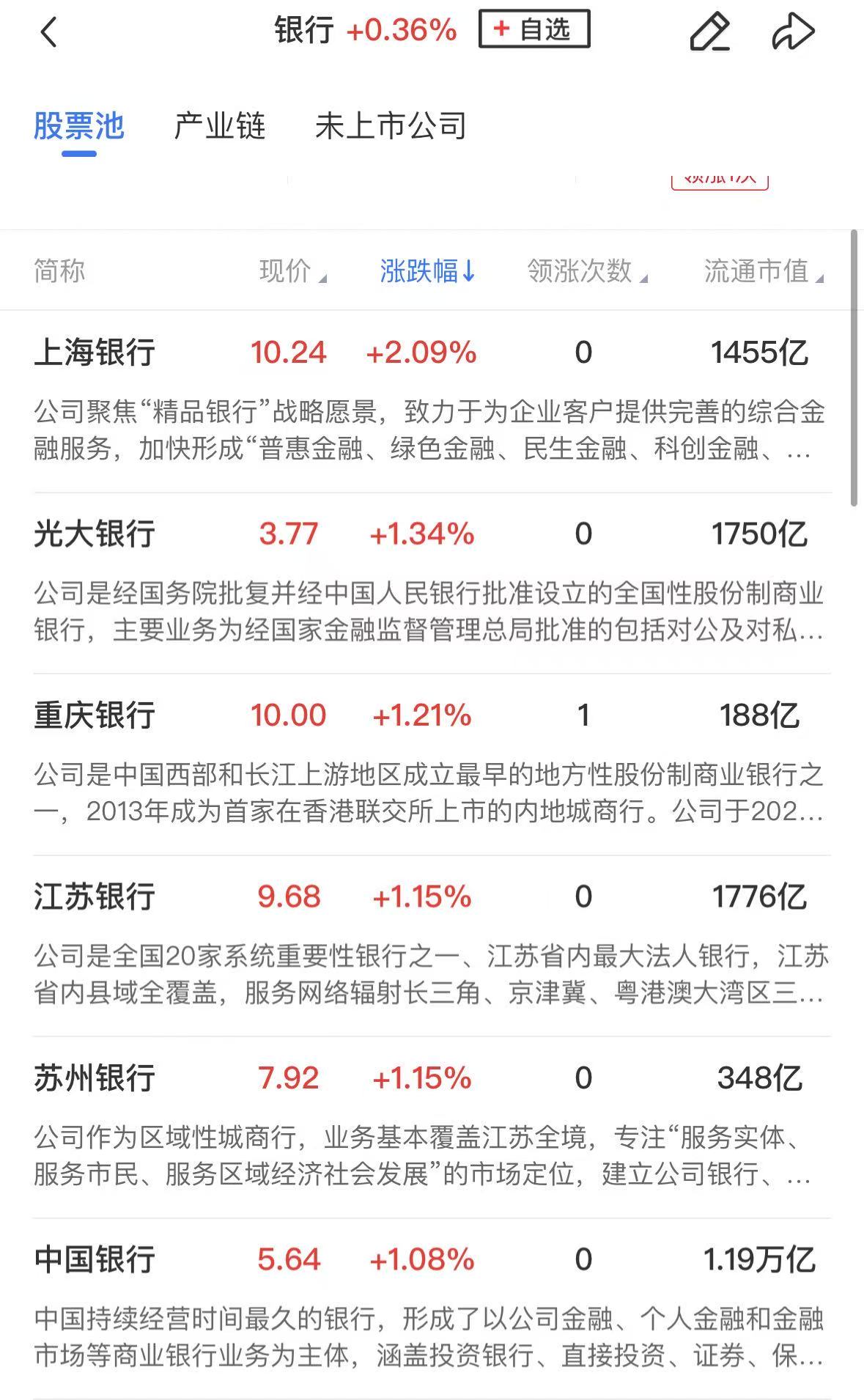 银行股维持强势,农业银行、建设银行、上海银行盘中创出历史新高,重庆银行、江苏银行、沪农商行、光大银行等涨幅靠前。