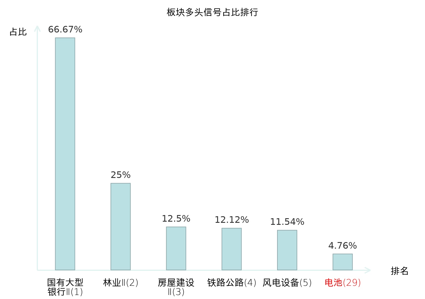 全市场所有行业板块中主力多头信号占比排名中,国有大型银行Ⅱ板块位居第一。林业Ⅱ板块名次提升最快,较昨日上升124位。