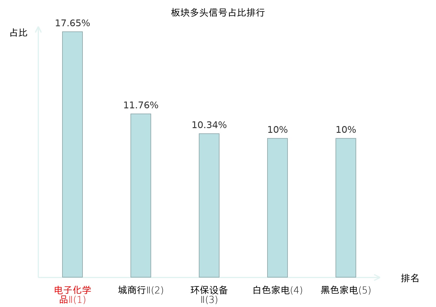 全市场所有行业板块中主力多头信号占比排名中,电子化学品Ⅱ板块位居第一。航海装备Ⅱ板块名次提升最快,较昨日上升109位。