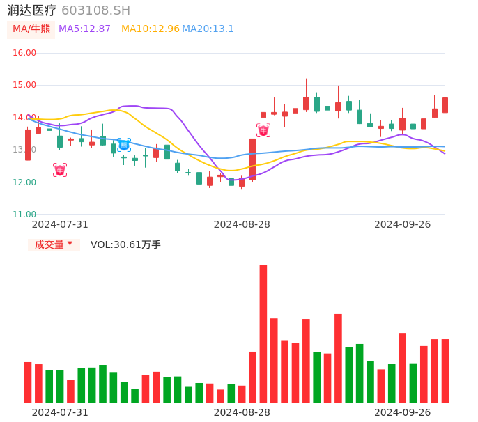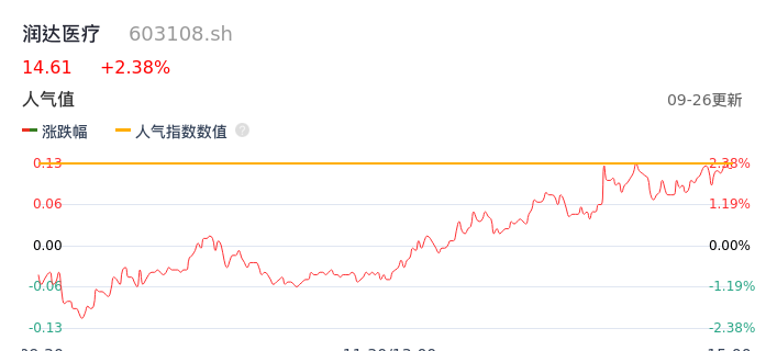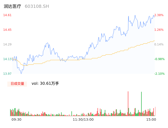 09月26日,润达医疗收报14.61,股价涨幅2.38%,成交金额4.39亿,换手率5.11%。