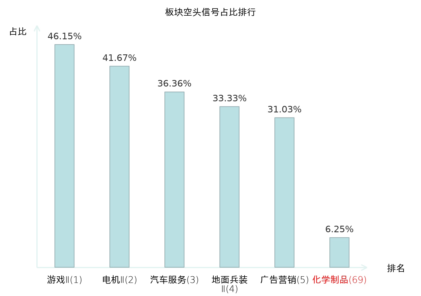 全市场所有行业板块中主力空头信号占比排名中,游戏Ⅱ板块位居第一。光学光电子板块名次提升最快,较昨日上升103位。