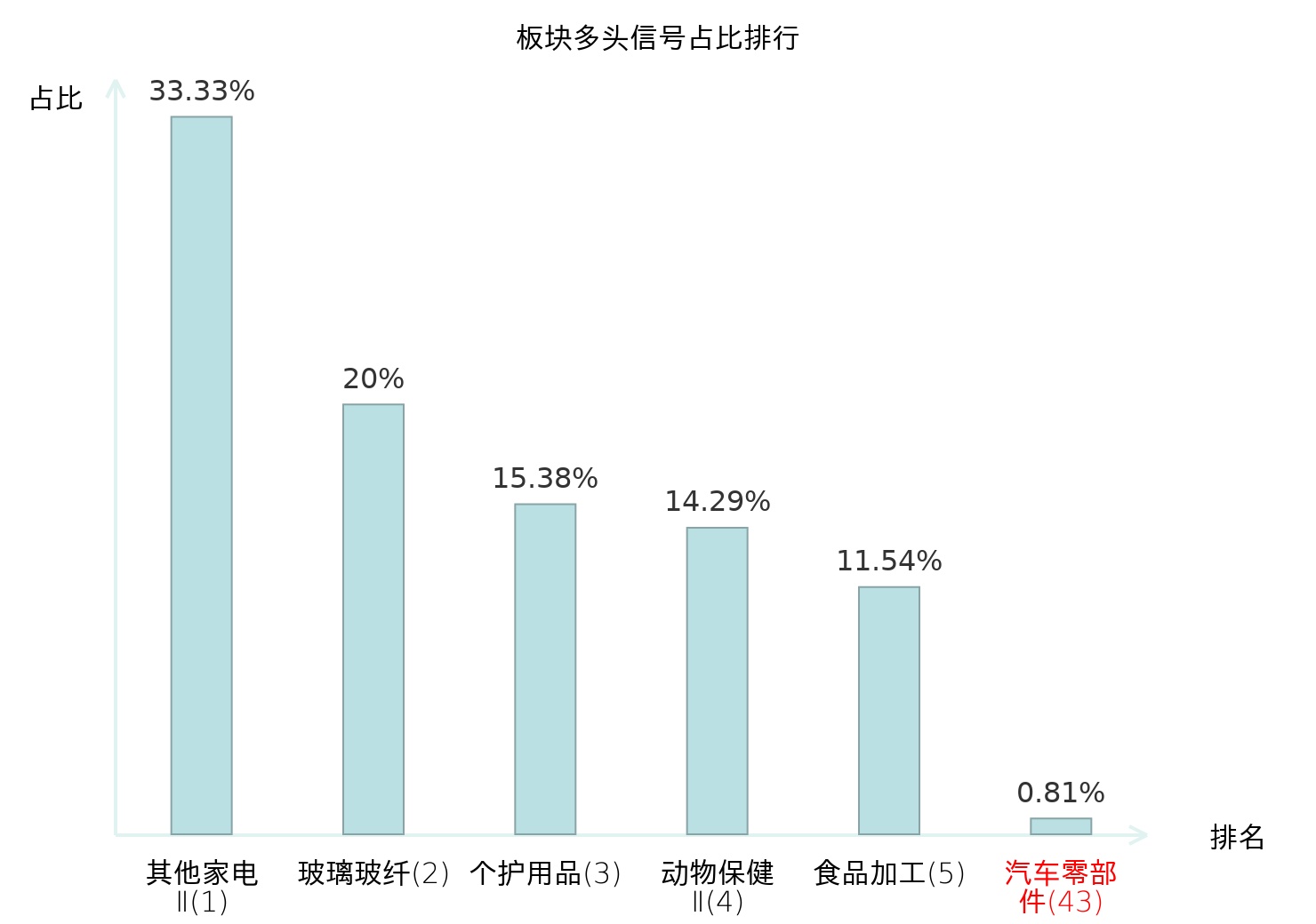 从主力宝信号数据分析,圣龙股份所属的汽车零部件板块中共有2只股票发出主力多头信号,主力多头信号占比在全行业中排名第43位,较昨日上升4位。排名的上升表明主力对汽车零部件板块的买入意愿有所增强,为投资者提供了关于该板块走势的重要参考。全市场所有行业板块中,主力多头信号占比排名中,其他家电Ⅱ板块位居第一。其他家电Ⅱ板块名次提升最快,较昨日上升128位。这些变动反映了主力资金在不同行业间的偏好调整,为投资者提供了观察市场情绪和潜在投资机会的线索。