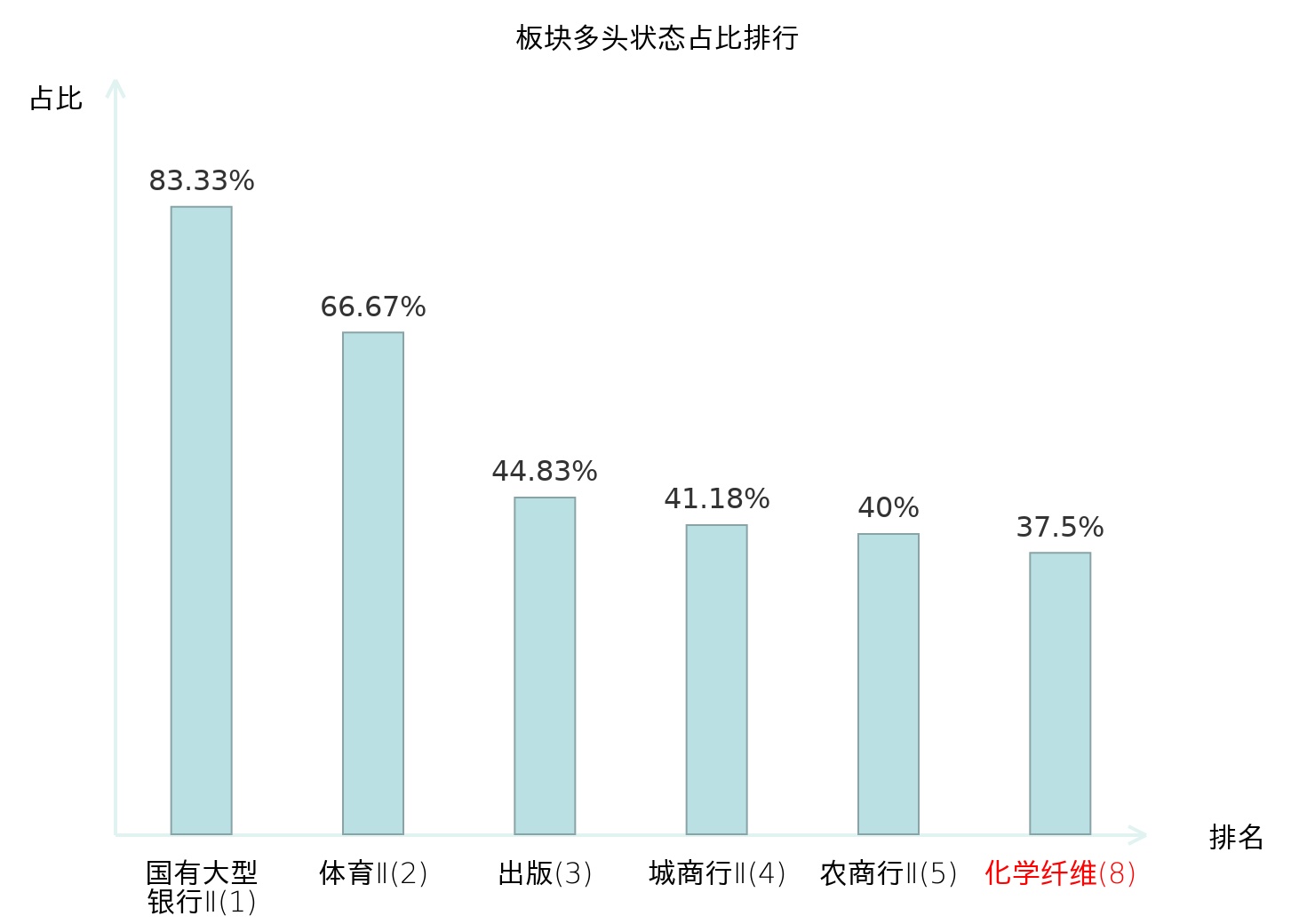 全市场所有行业板块中主力多头状态占比排名中,国有大型银行Ⅱ板块位居第一。焦炭Ⅱ板块名次提升最快,较昨日上升35位。