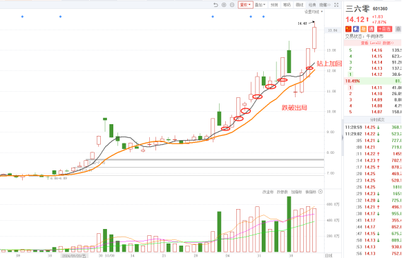 AI大模型三六零,该股同样符合短期均线战法,我们注意到,该股在10月底突破下降压力线后,股价依托5日均线震荡向上,期间每一次回踩5日线,都会继续反弹。5日线也成为该股的最好买入位置。