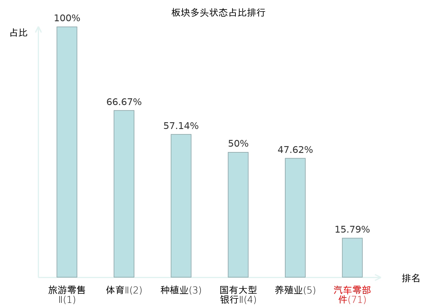 全市场所有行业板块中主力多头状态占比排名中,旅游零售Ⅱ板块位居第一。互联网电商板块名次提升最快,较昨日上升89位。