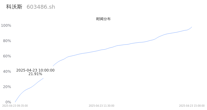 根据成交分布分析,该股票当天放量成交,成交清淡。时间上看,早盘前半小时成交量占据当天总成交量的21.91%;价格上看,成交呈现中间峰。成交分布分析主要研究股票成交的分布特性,不具有预测功能,请知悉。