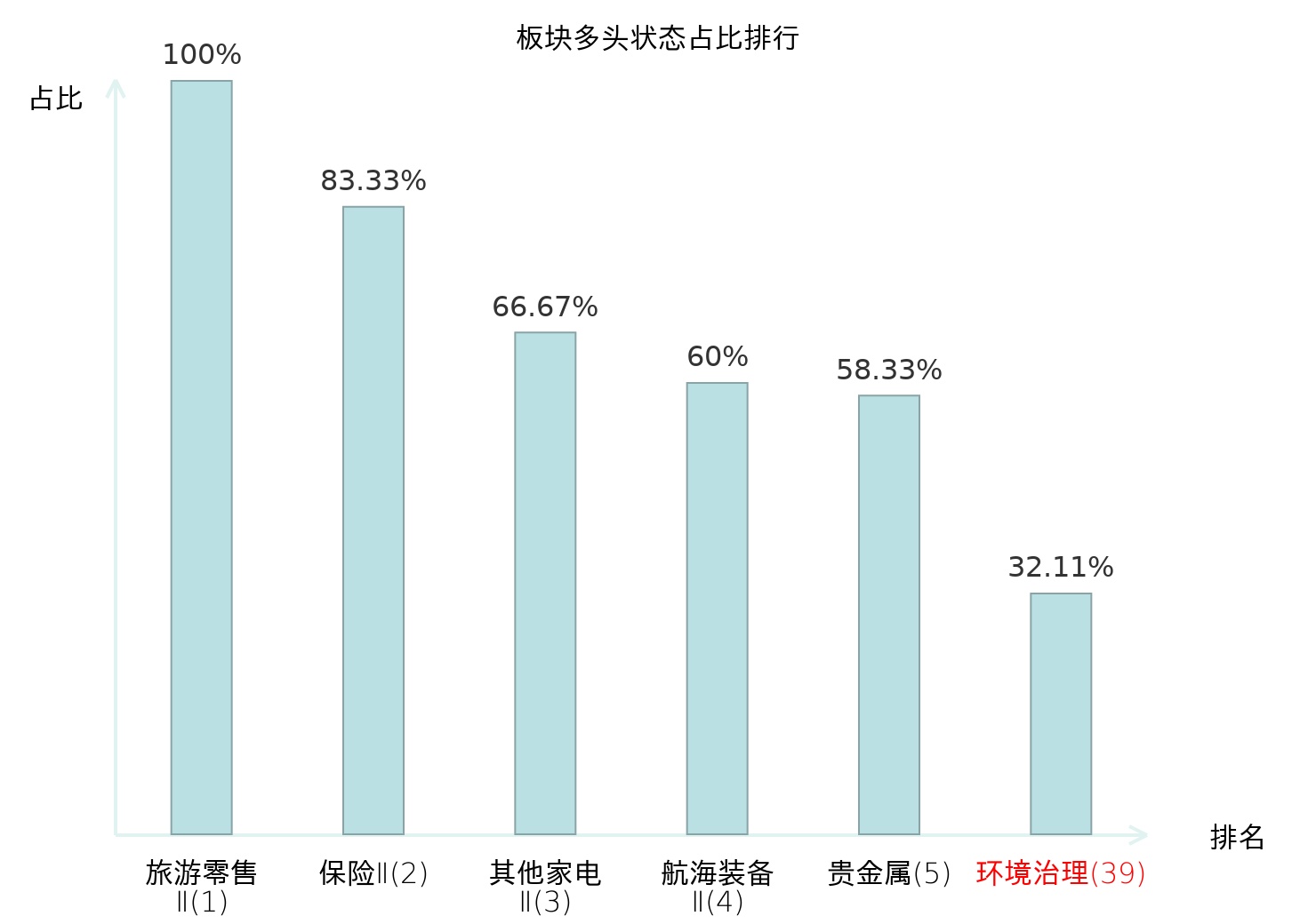 全市场所有行业板块中主力多头状态占比排名中,旅游零售Ⅱ板块位居第一。综合Ⅱ板块名次提升最快,较昨日上升69位。