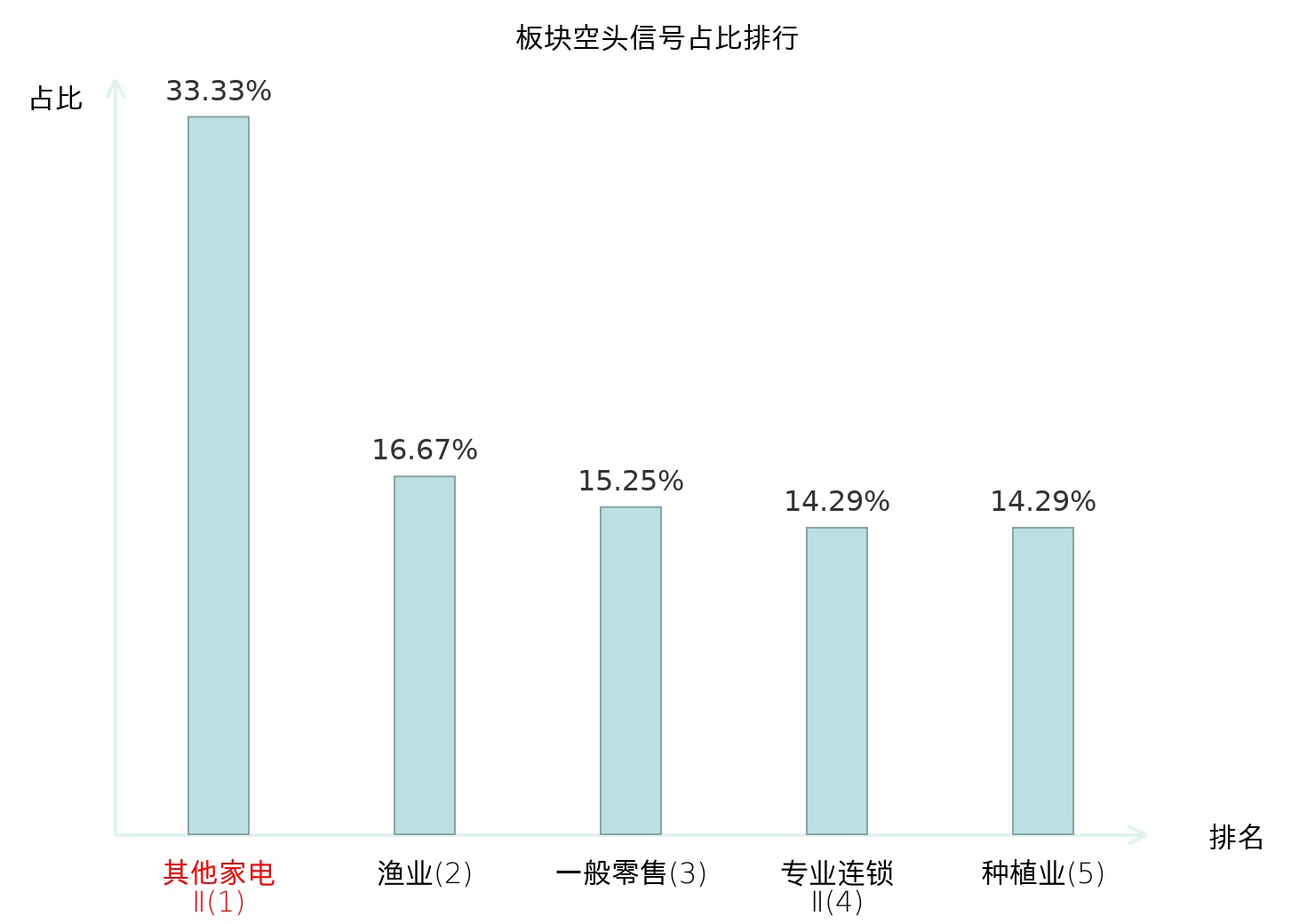 从主力宝信号数据分析,荣泰健康所属的其他家电Ⅱ板块中共1只股票发出主力空头信号,主力空头信号占比在全行业中排名第1位,较昨日上升78位。排名越高说明主力当日卖出意愿越强。全市场所有行业板块中主力空头信号占比排名中,其他家电Ⅱ板块位居第一。造纸板块名次提升最快,较昨日上升115位。这些变动揭示了主力资金在不同行业间的偏好变化,为投资者观察市场趋势提供了重要依据。
