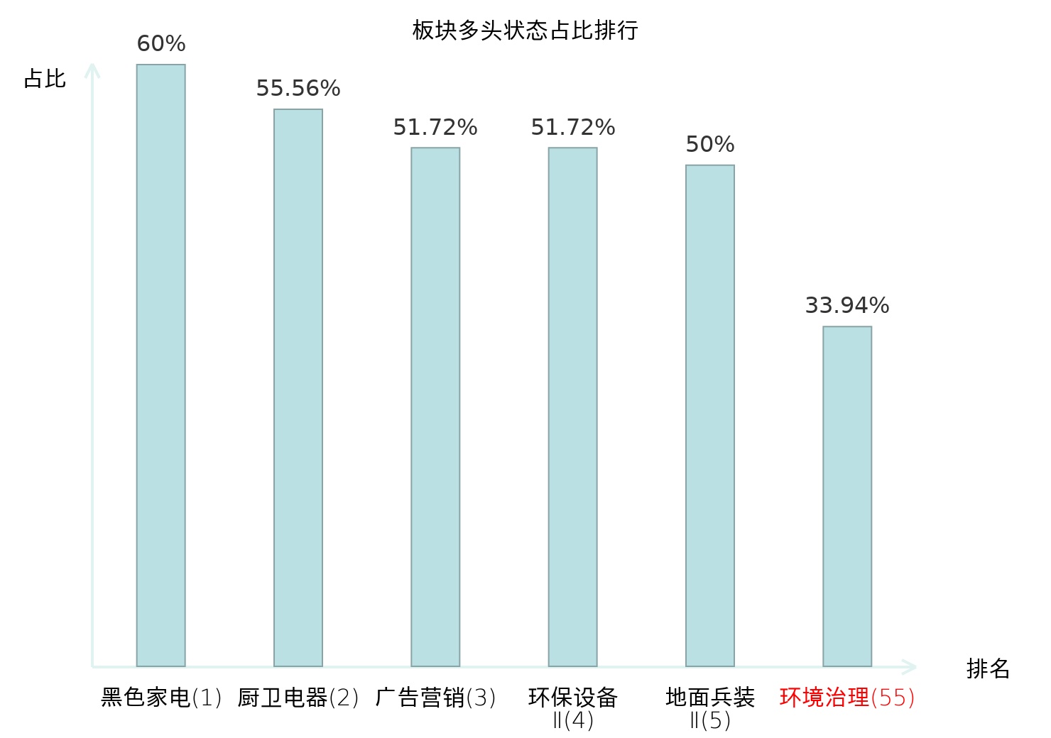 全市场所有行业板块中主力多头状态占比排名中,黑色家电板块位居第一。保险Ⅱ板块名次提升最快,较昨日上升118位。
