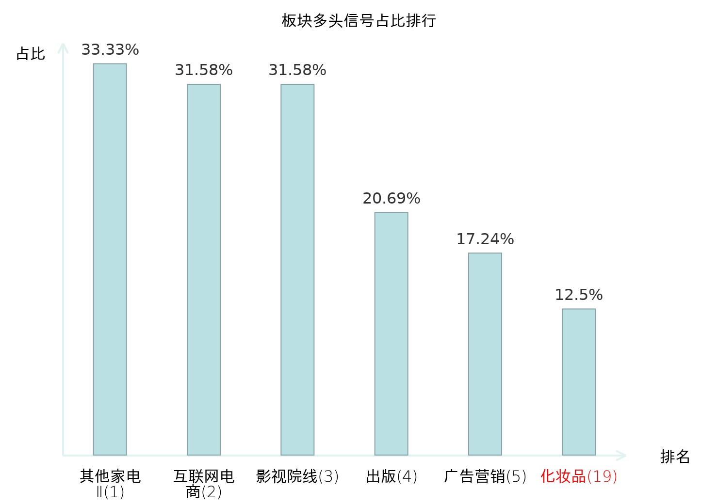 全市场所有行业板块中主力多头信号占比排名中,其他家电Ⅱ板块位居第一。其他家电Ⅱ板块名次提升最快,较昨日上升128位。