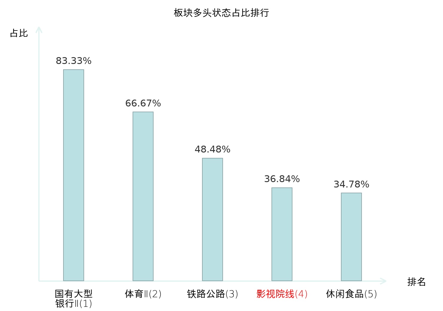 全市场所有行业板块中主力多头状态占比排名中,国有大型银行Ⅱ板块位居第一。个护用品板块名次提升最快,较昨日上升69位。