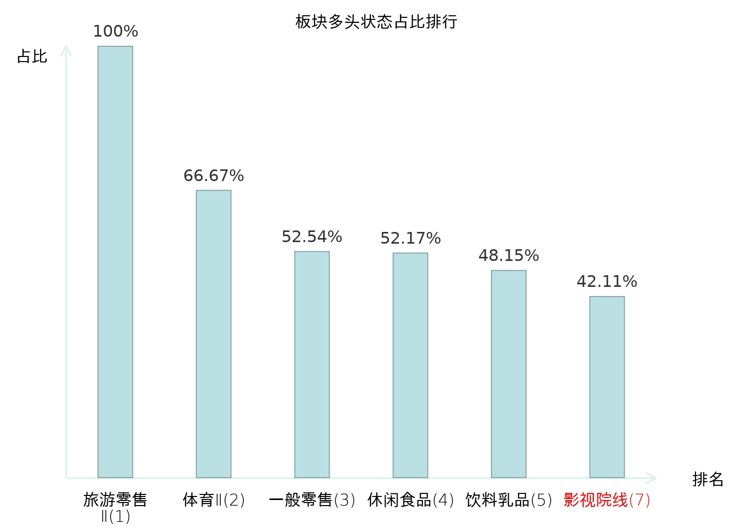 全市场所有行业板块中主力多头状态占比排名中,旅游零售Ⅱ板块位居第一。农业综合Ⅱ板块名次提升最快,较昨日上升109位。