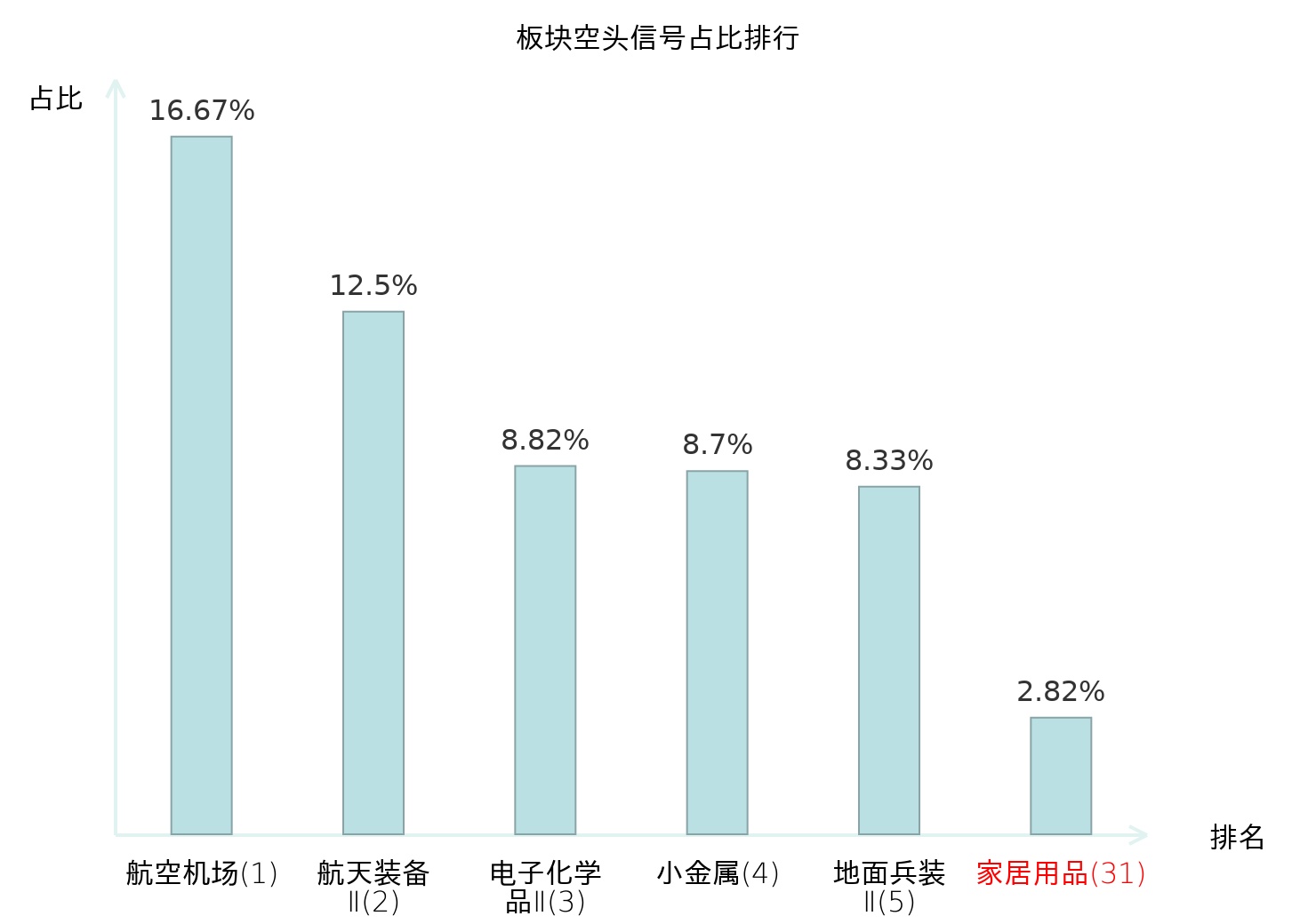 全市场所有行业板块中主力空头信号占比排名中,航空机场板块位居第一。工业金属板块名次提升最快,较昨日上升119位。
