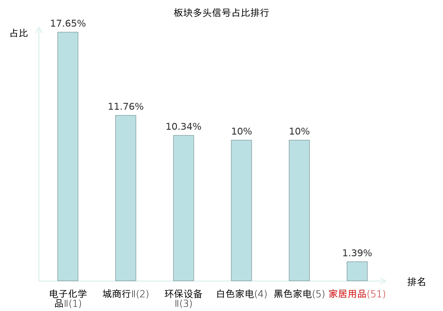 全市场所有行业板块中主力多头信号占比排名中,电子化学品Ⅱ板块位居第一。航海装备Ⅱ板块名次提升最快,较昨日上升109位。