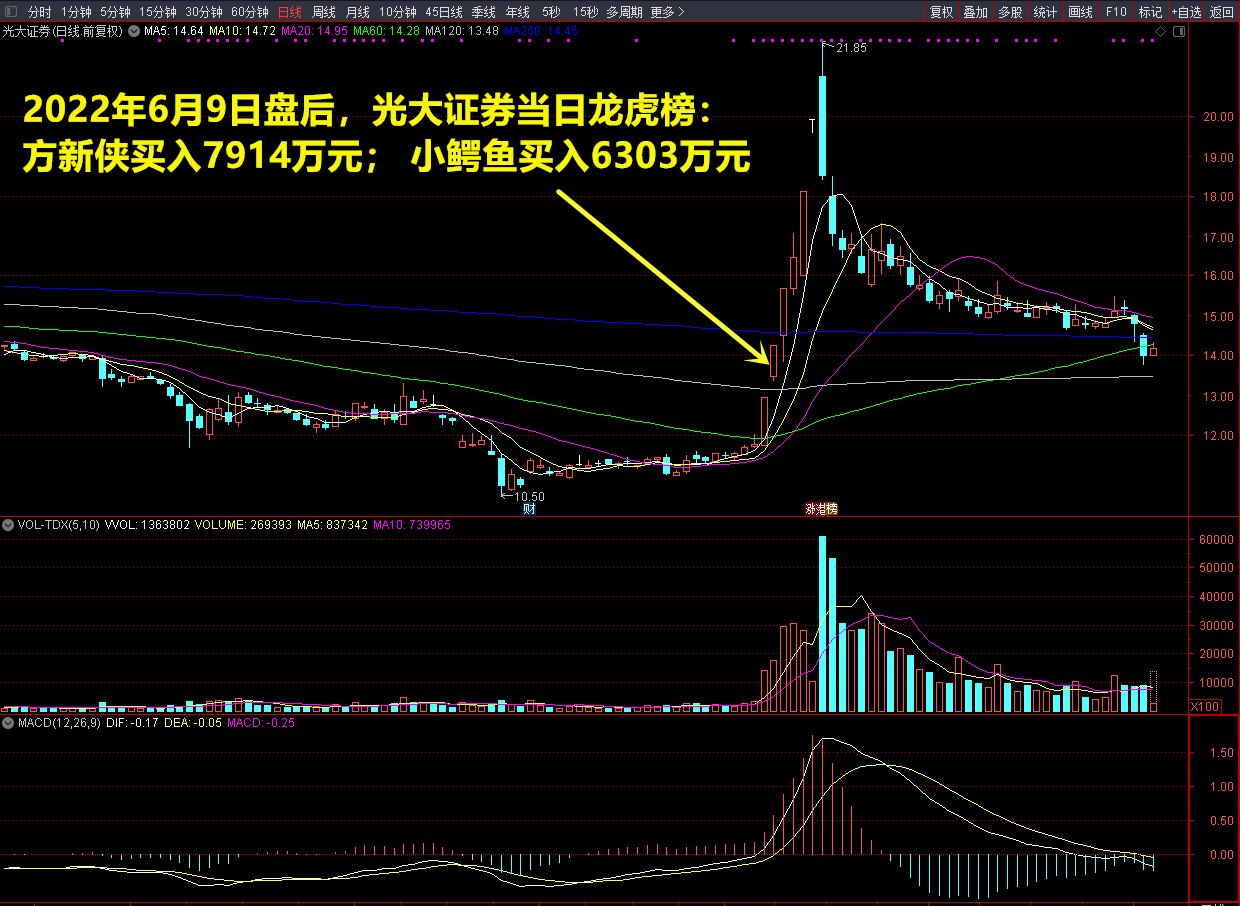 大家还记得2022上半年那一波券商暴涨行情么,总龙头光大证券就是由方新侠和小鳄鱼联手打造的。