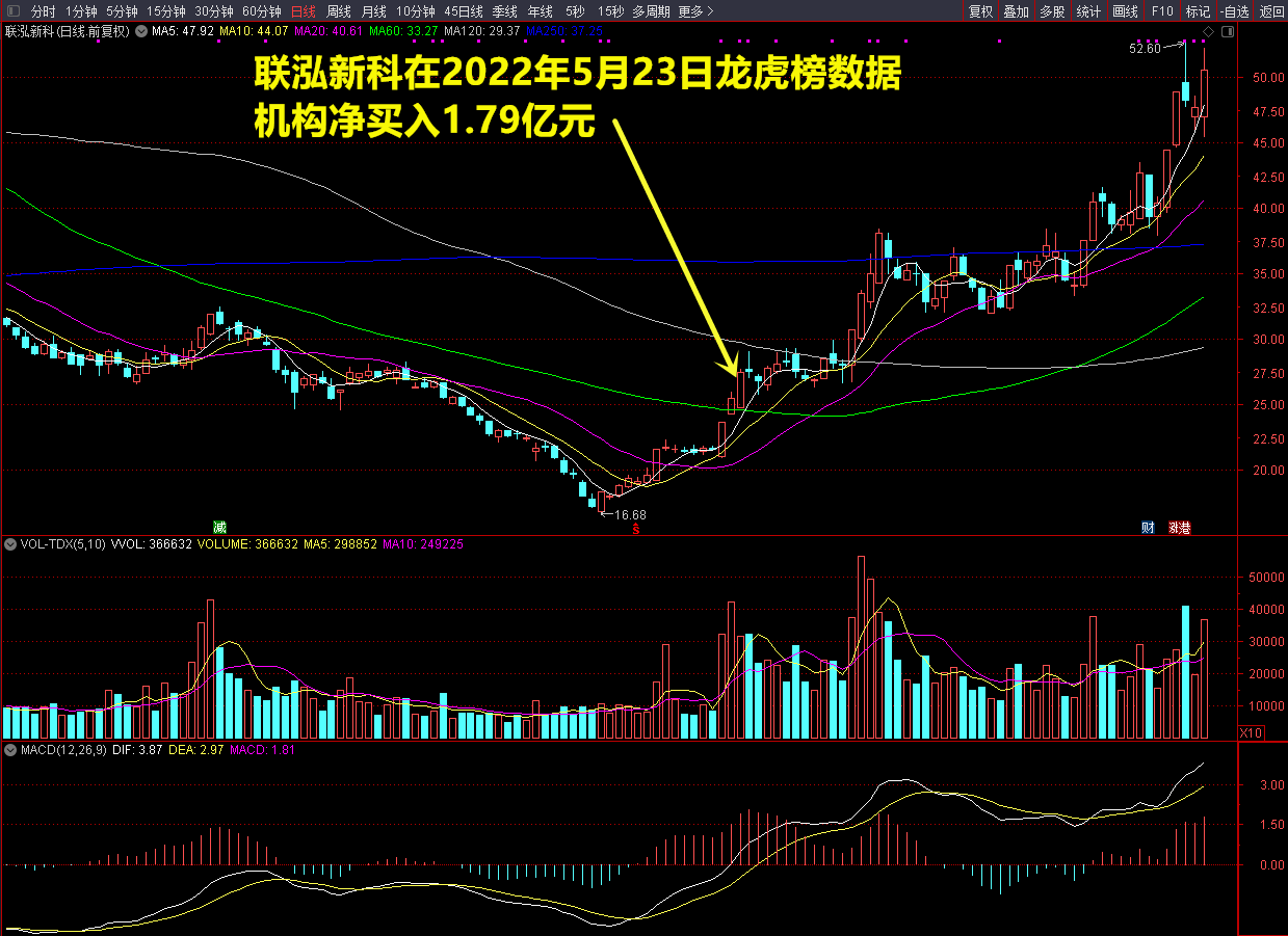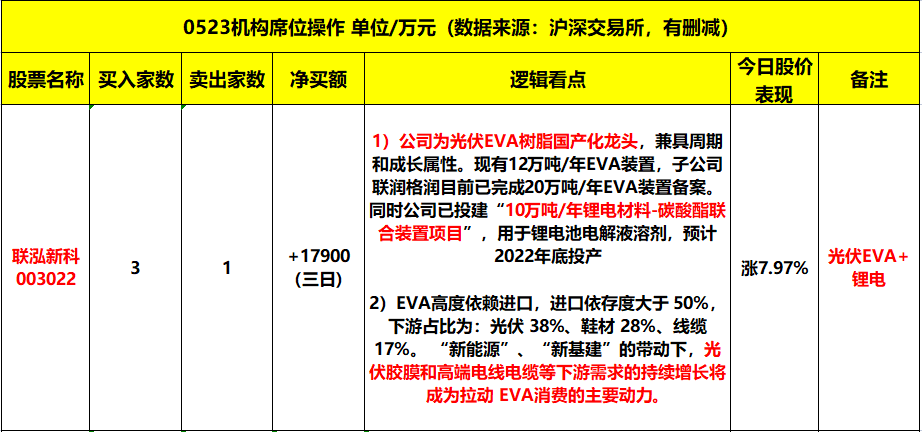 再给大家看一个案例,联泓新科在2022年5月23日的龙虎榜数据: