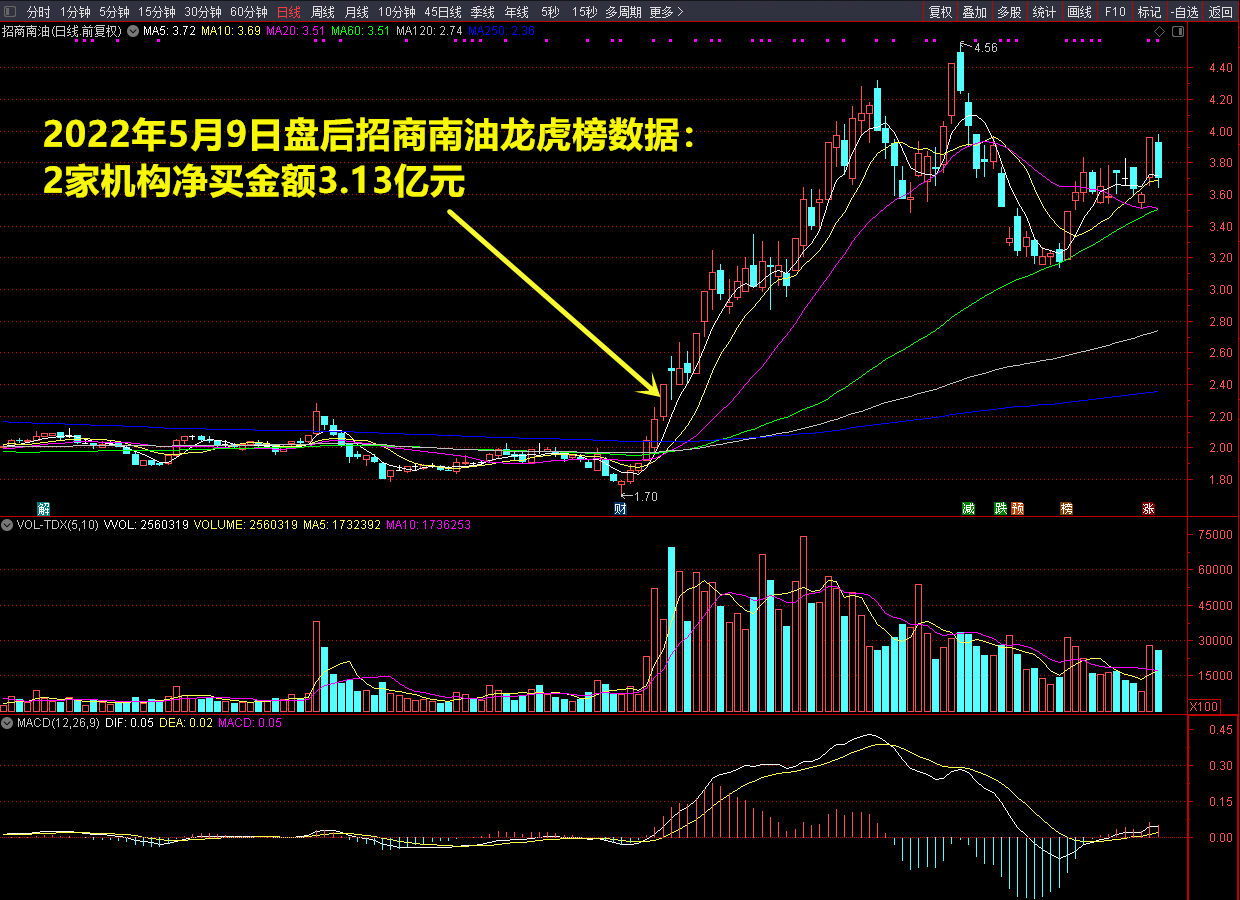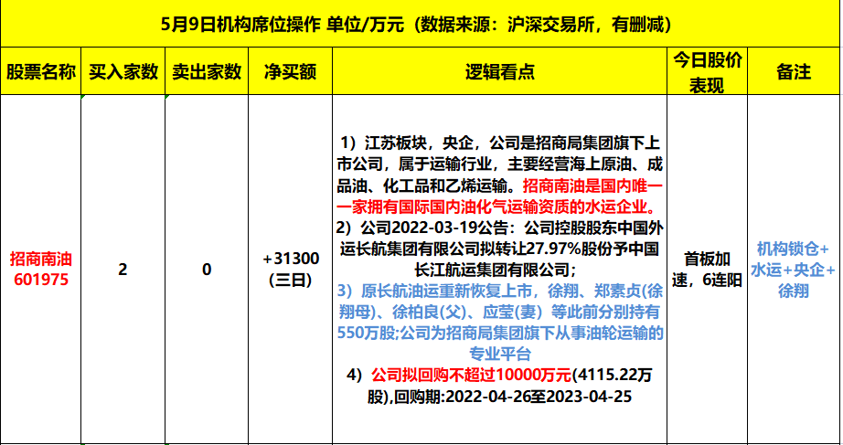 2022年5月9日盘后,招商南油当日龙虎榜数据: