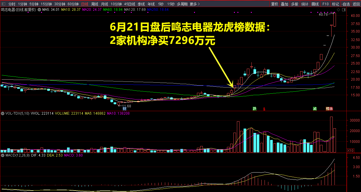 鸣志电器可是最近的机器人大牛股,其实经常关注龙虎榜的投资者早在6月21日就引起了重点关注。