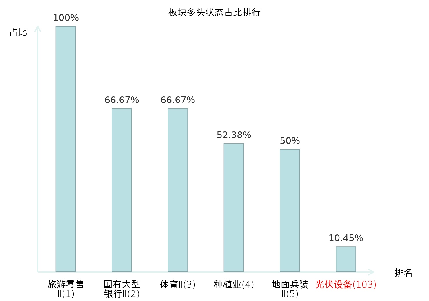 全市场所有行业板块中主力多头状态占比排名中,旅游零售Ⅱ板块位居第一。股份制银行Ⅱ板块名次提升最快,较昨日上升54位。